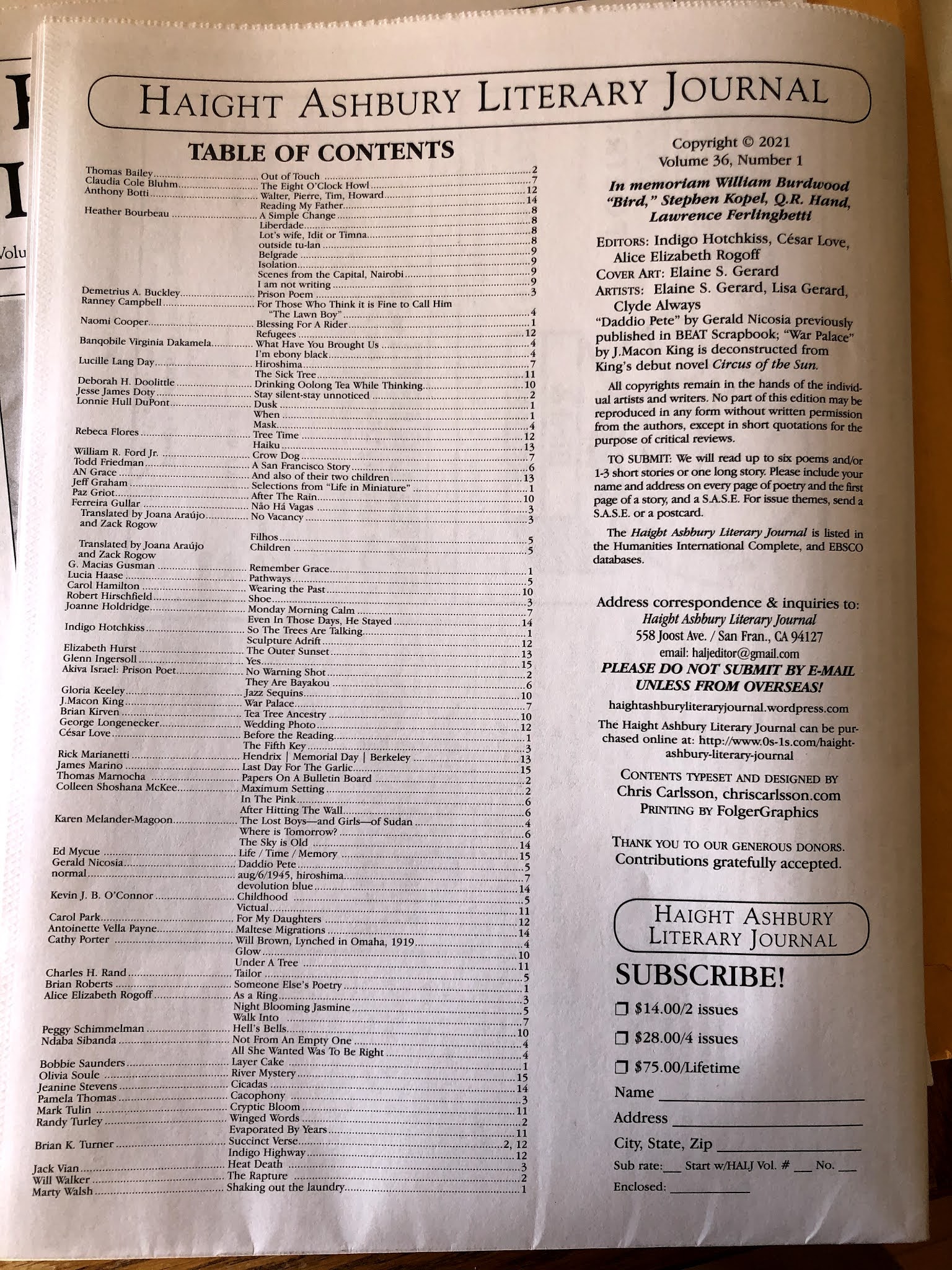 A print issue will be available this summer print-on-demand from Lulu.